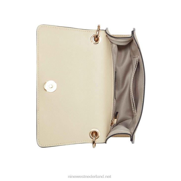nine west designer anais mini crossbody flap met hardware details en exterieur branding. perfect voor alledaagse en speciale gelegenheden met een prachtige kettingriem aan de bovenkant. draag hem als crossbodytas of verwijder hem voor een leuke clutch of handgreep aan de bovenkant