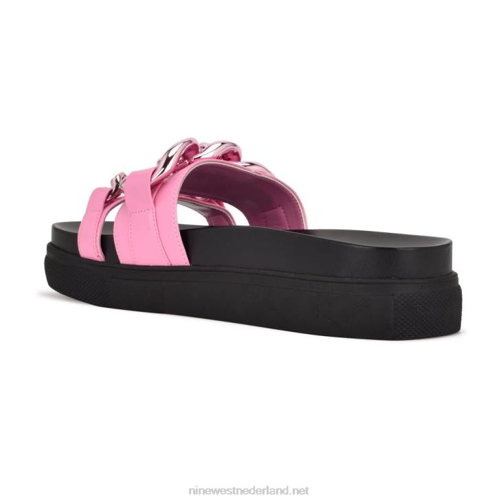 Voeg een beetje rock-'n-roll-glamour toe aan je sandalencollectie met de nope plateausandalen. deze platformslippers hebben dubbele bandjes met metalen kettingdetails.